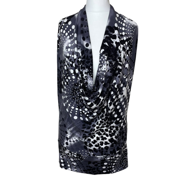 Y2K 00’s Jane Norman black and white cowl neck top with abstract print