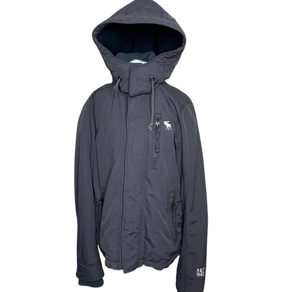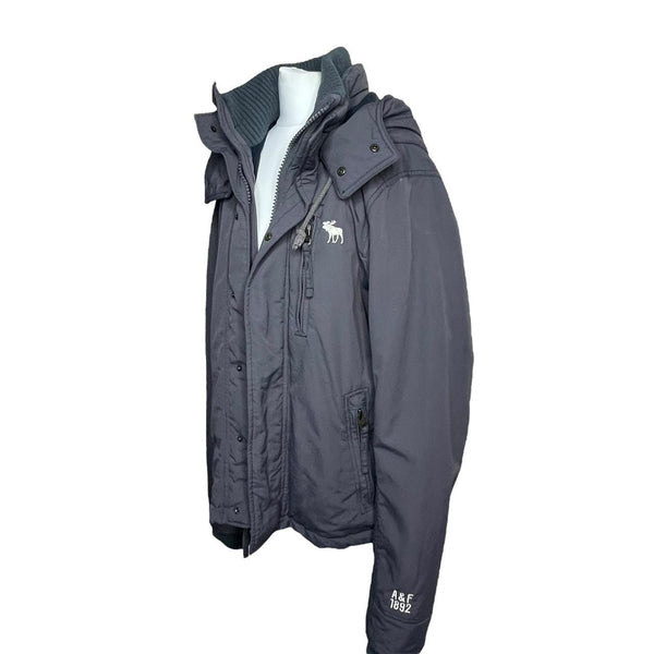 Abercrombie & Fitch black / charcoal grey winter jacket. fleece lined. Zip & Button closure