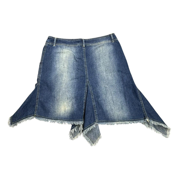 Asymmetrical Y2K denim skirt with frayed hem