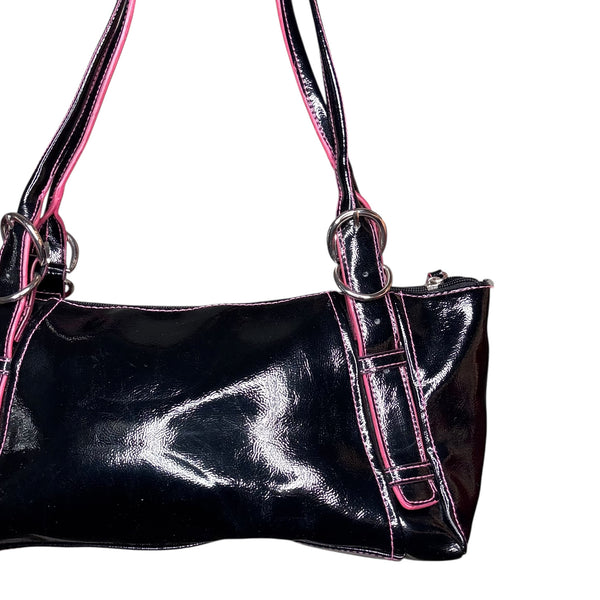 Black and pink faux leather shoulder bag with silver hardware #Y2K