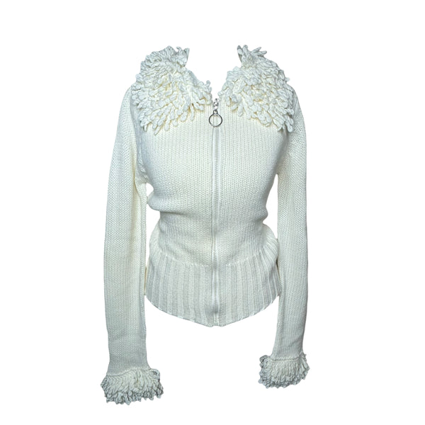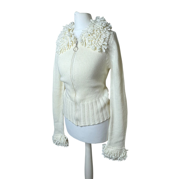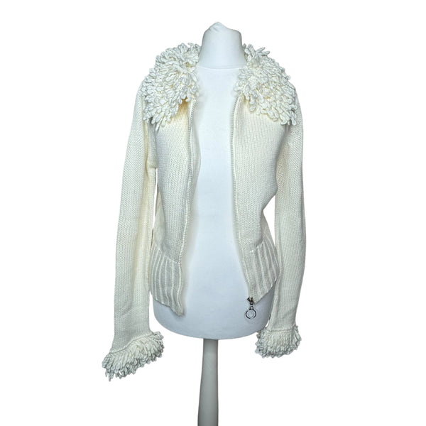 Cream zip up cardigan with key ring detail