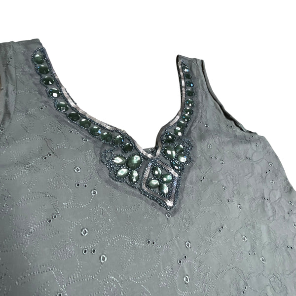 Grey y2k tank top with beaded details #beadedtop