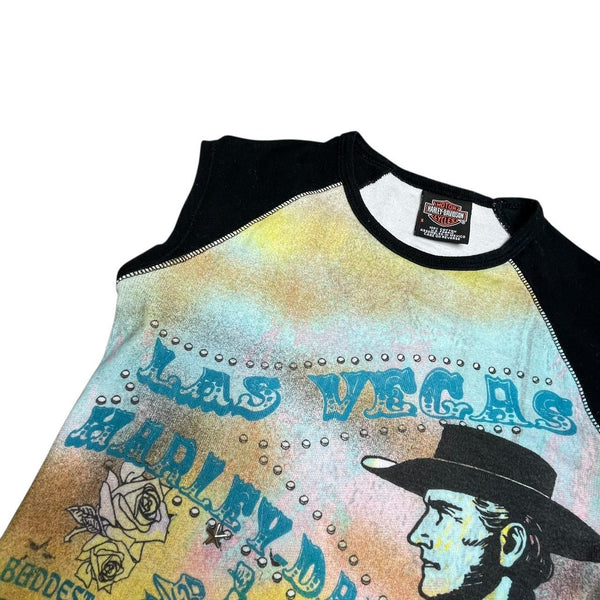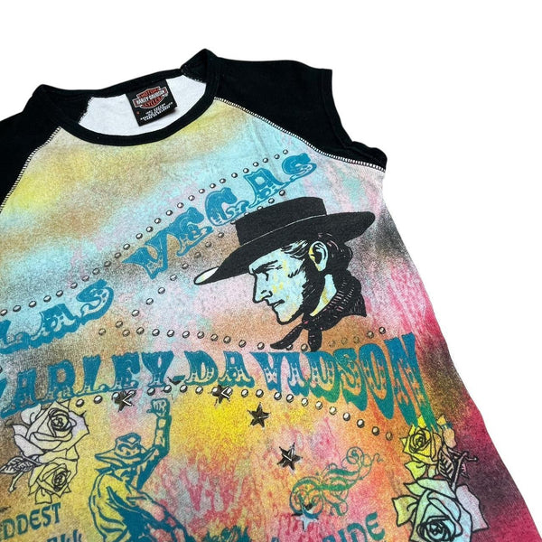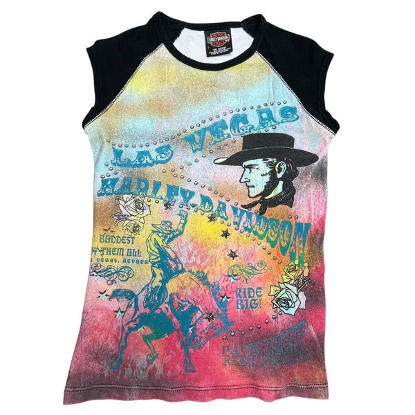 Harley Davidson bright multicoloured graphic top with studded star detailing