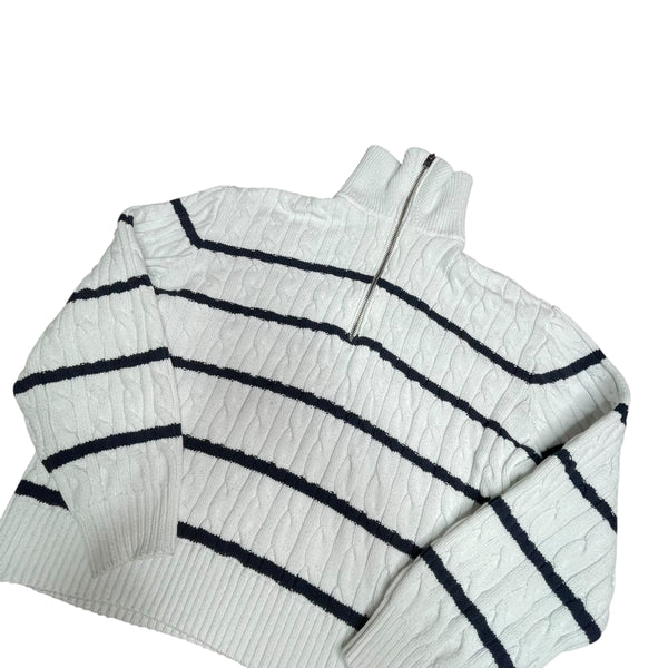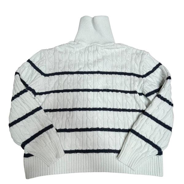 White and navy blue striped turtleneck sweater #stripes #turtleneck