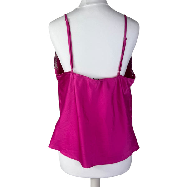 Hot pink satin cami with lace trim
