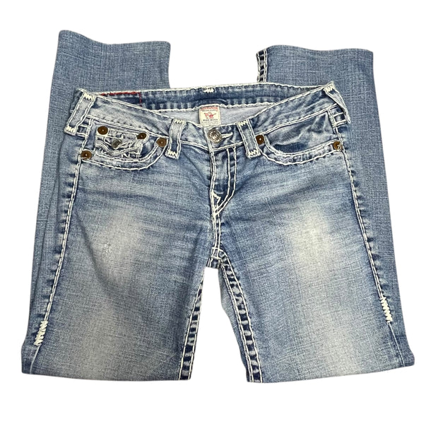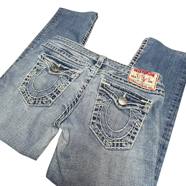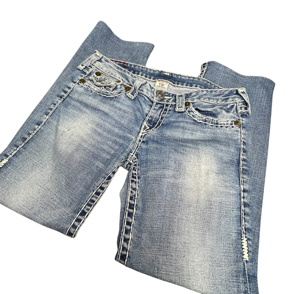 True Religion blue and white embroidered thick stitching jeans #y2kstyle