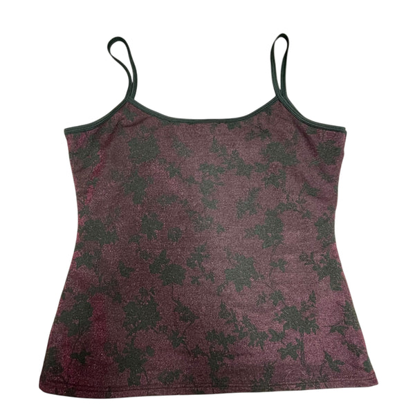 Purple and black floral print lace overlay cami top with adjustable straps y2k
