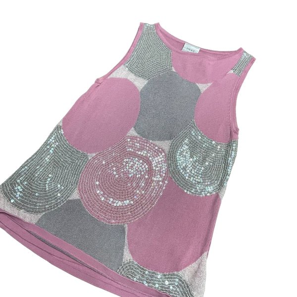 Pink and grey sequin knitted y2k vintage tank top