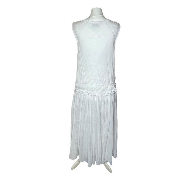 White lace trim dress with tie waist, perfect for a boho look