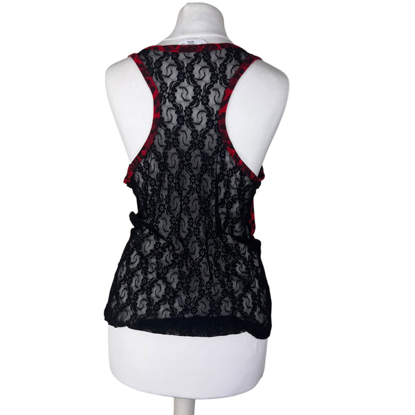 Y2K red animal print top with diamanté lightning bolt detail and full lace back