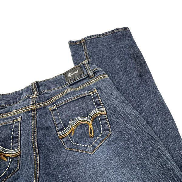 Y2K bootcut jeans with gold stitching