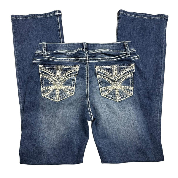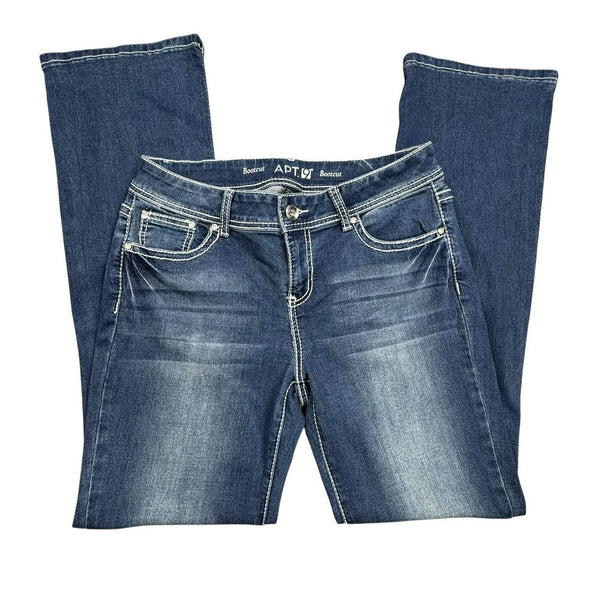 Apt. 9 blue bootcut jeans with white stitching and back pocket design