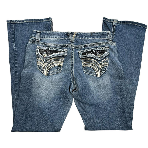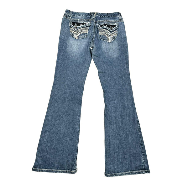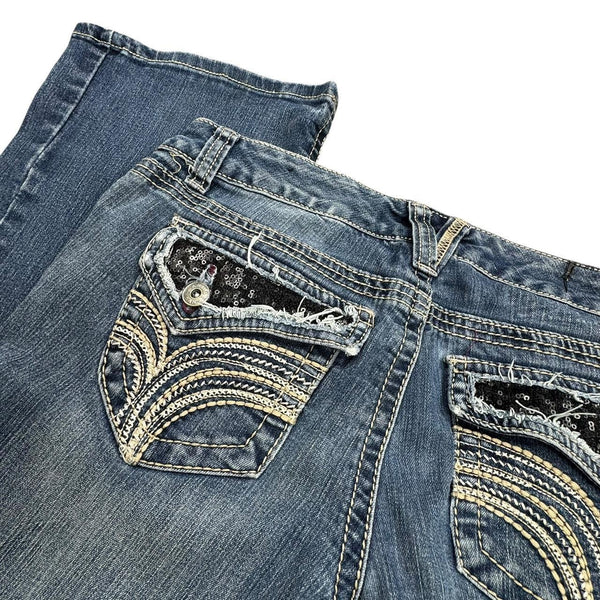 Y2K blue bootcut jeans with rhinestone & embroidery details