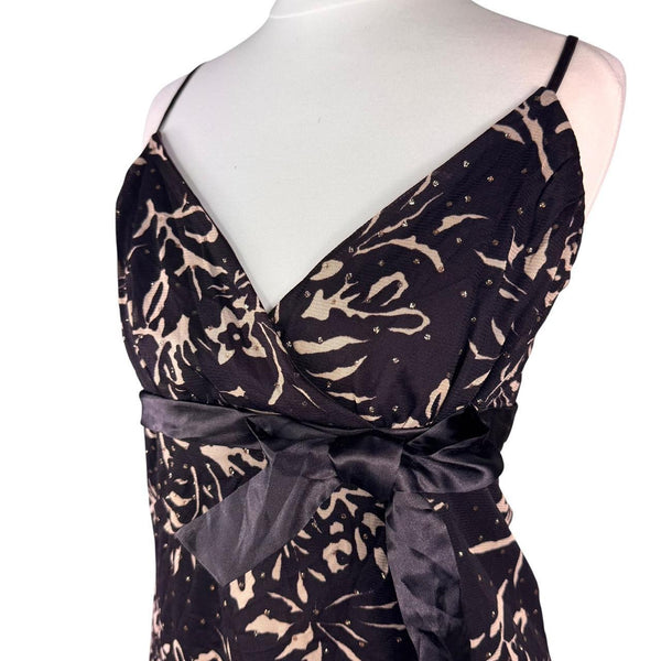 Brown & cream floral print cami top with bow detail Y2K