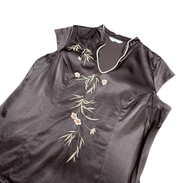 Brown y2k satin top with embroidered flowers