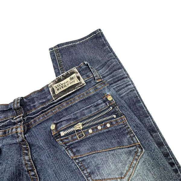 Silver Blue Y2K jeans with a unique design