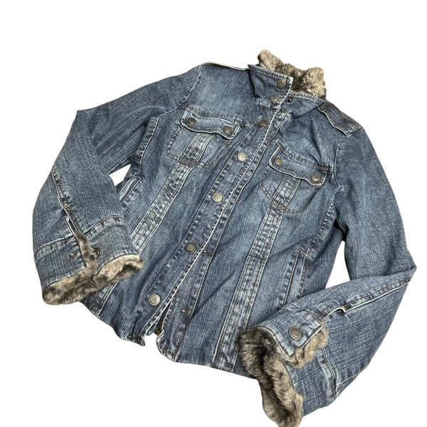 Faux fur trim Y2K denim jacket