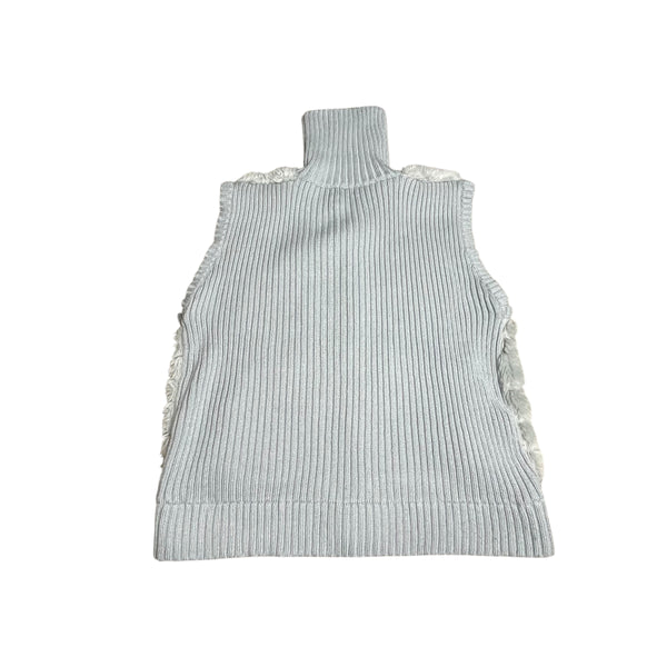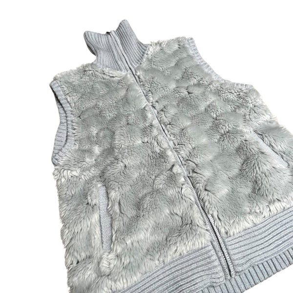 Grey and fuzzy faux fur gilet vest with ribbed detail and high neck
