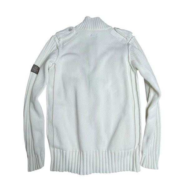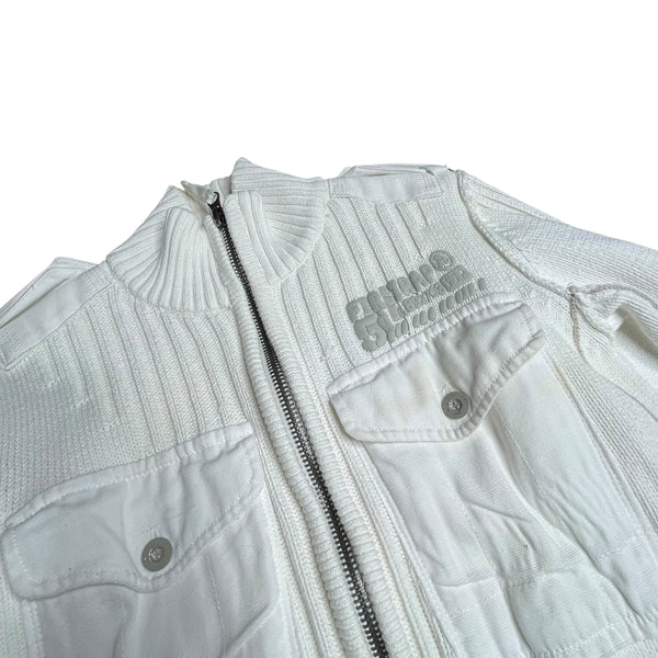 White Firetrap knitted ribbed high neck zip up with lots of y2k details