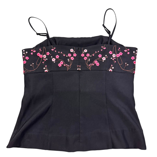 Y2K black with pink floral embroidery thick material cami top