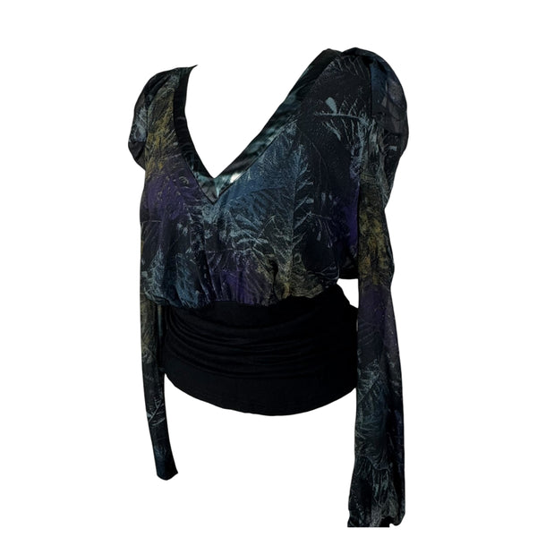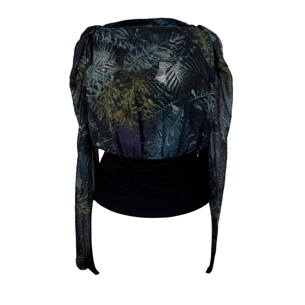 Y2K puff shoulder long sleeve mesh top