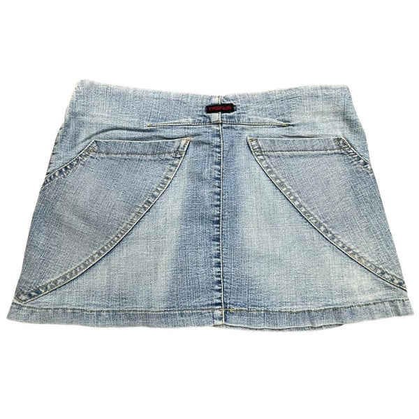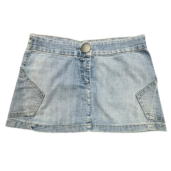 Blue Y2K denim micro mini skirt with button and zipper closure