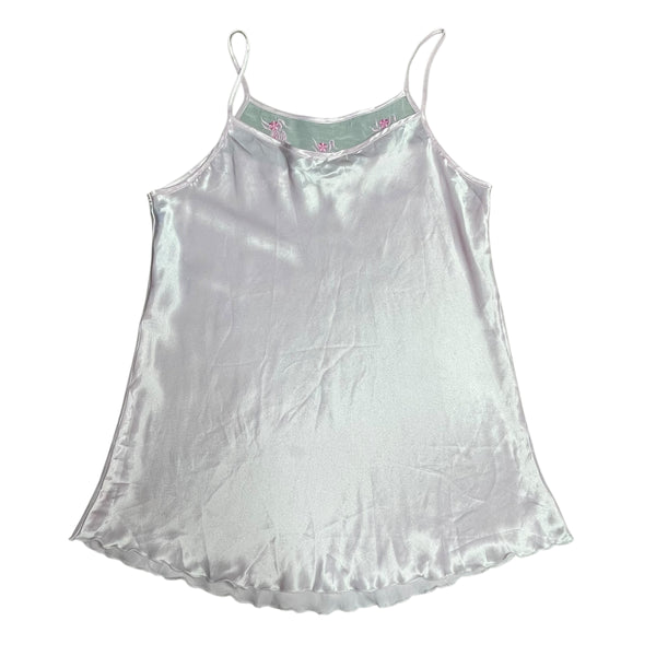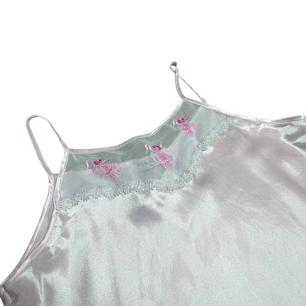 Baby pink and white y2k satin cami slip with a touch of fairy charm