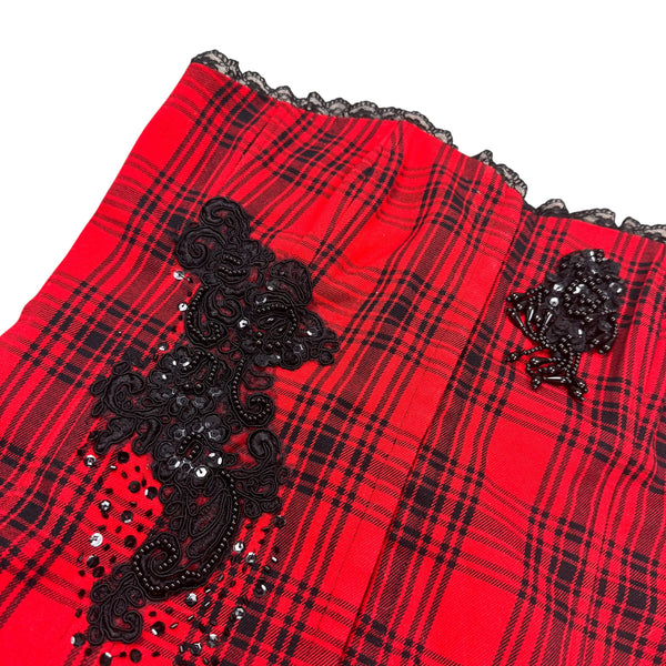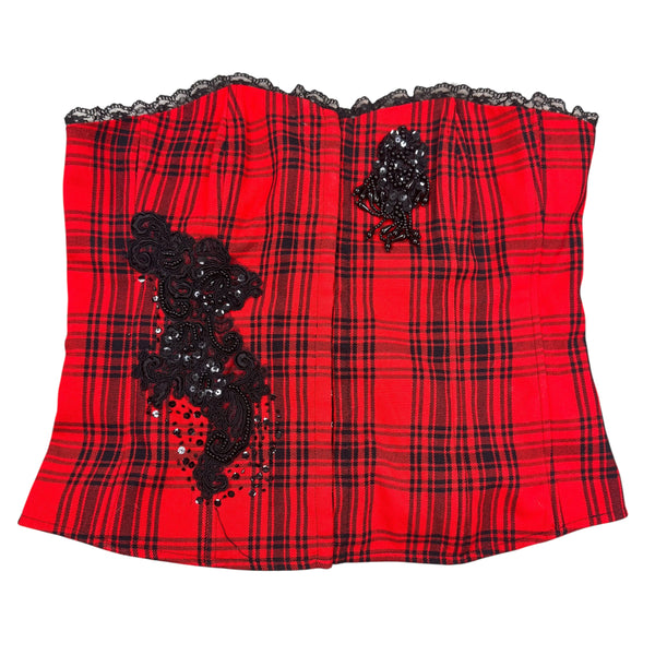 Y2K red and black beaded detail plaid corset