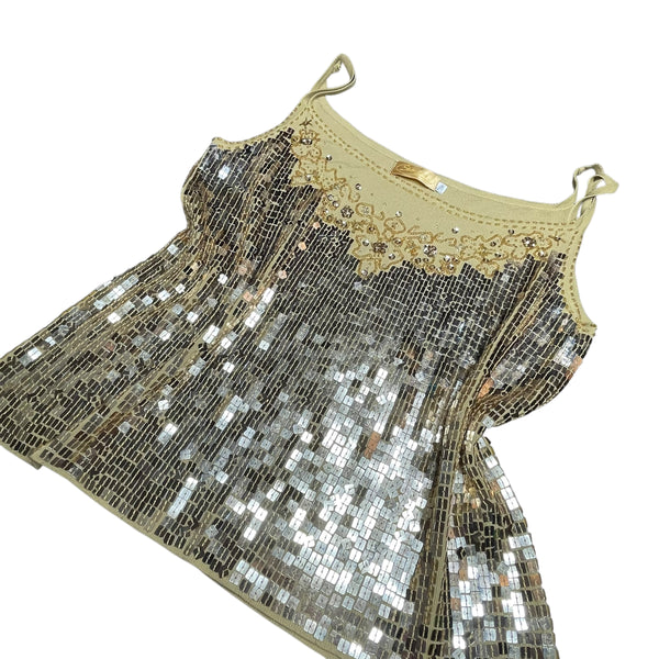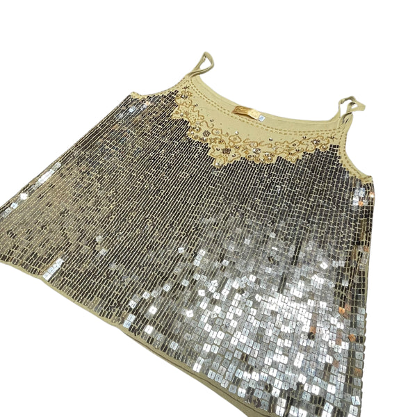 Tan and silver sequin tank cami top with a touch of Y2K glamour